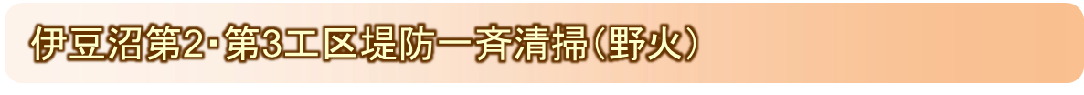 伊豆沼第2・第3工区堤防には、草木や竹林が多く繁茂し、空き缶などのゴミが散乱して、環境保全上の課題となっています。また、こうした樹林化はヨシ原などに代表される湿地環境の消失につながります。そのため、3月に伊豆沼漁協、土地改良区、財団による一斉清掃(野火)を行っています。 |