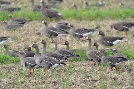 | ○野鳥観察のルール ・夜間のライトなどの光はマガンの行動に影響します。飛び立ち前、ねぐらで休んでいるときに、光による妨害が大きいとマガンはねぐら場所を変えることがあります。撮影時に、フラッシュをたいて撮影しないでください。また、ねぐらのある水面を車のライトで照らさないで下さい。 ・ガンやハクチョウは首を上げたら警戒している証拠です。それ以上近づかないでください。鳥を驚かさないように、適度な距離をとって観察してください。 ・農道で鳥を観察する際には、車を脇に寄せて止めるなど農家の方の通行の妨げにならないようにしてください。 ・道路で鳥を観察する際には、車の通行に十分注意してください。 ・ハクチョウやカモなどの鳥に餌をやる場合は、各サンクチュアリセンターにある専用のエサを与えてください。菓子パンなど油分や塩分の多い加工食品を与えないでください。(考え方の背景) ・鳥インフルエンザの予防のため、鳥の糞や死体に触らないでください。また、観察した後は念のため手洗い、うがいを行ってください。 ・ヨシ原はオオヨシキリなど夏鳥の営巣場所であり、カシラダカ、オオジュリンなどの冬鳥の採食場所です。ヨシ原には立ち入らないでください。 |