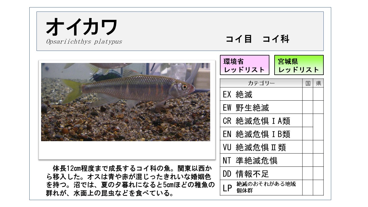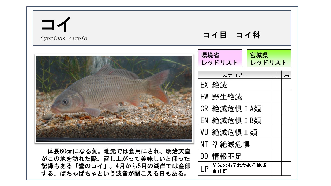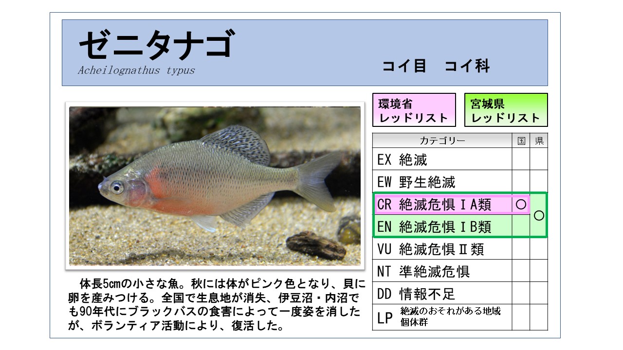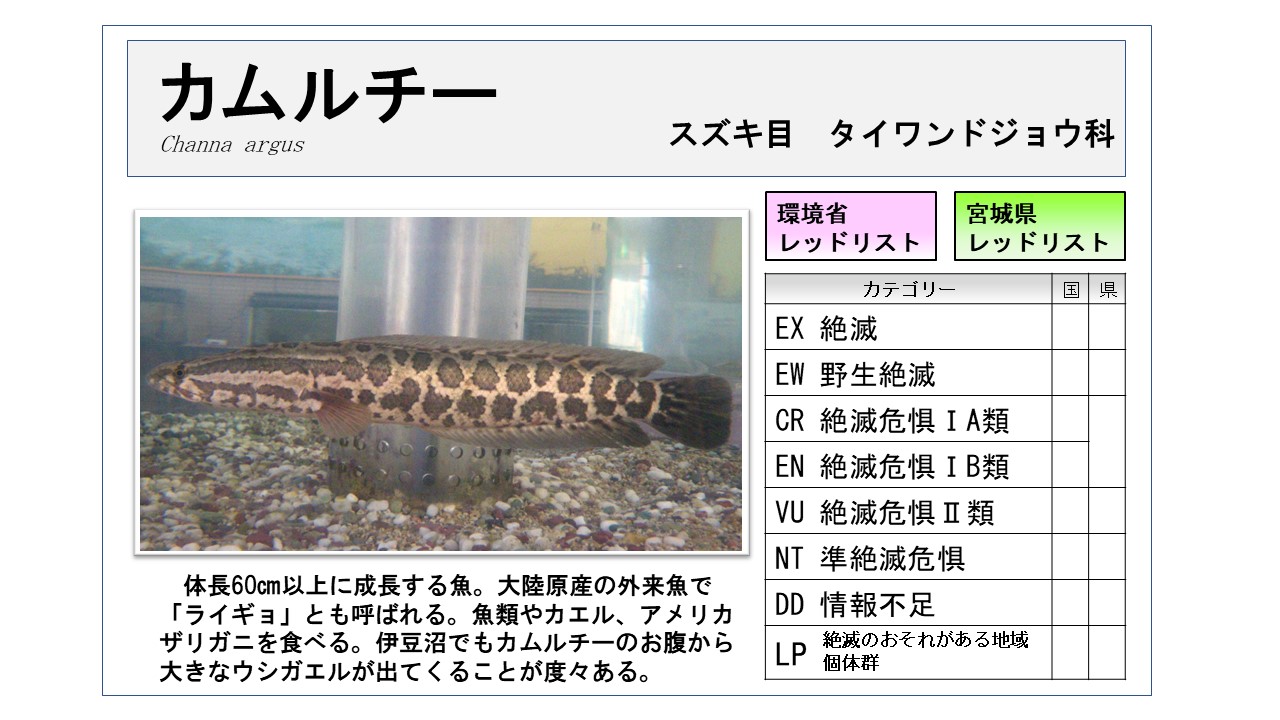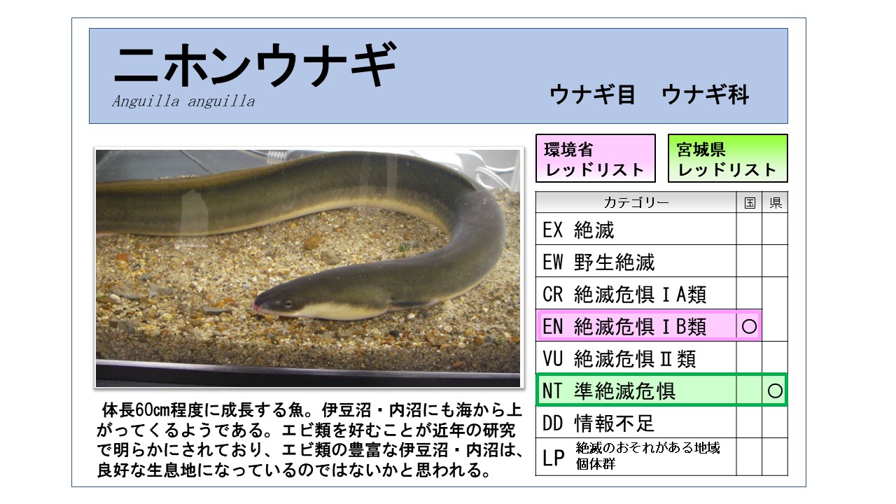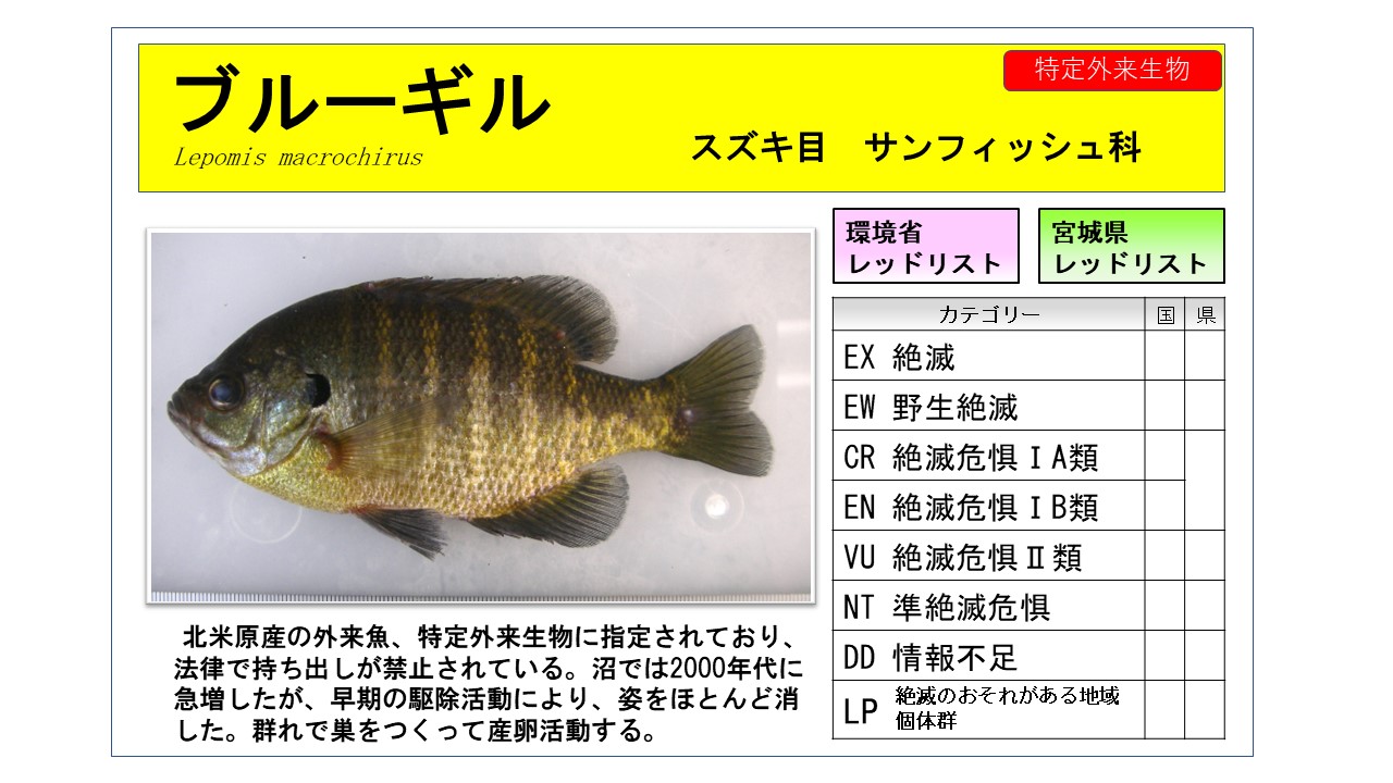 伊豆沼・内沼に生息する魚類を掲載しています。