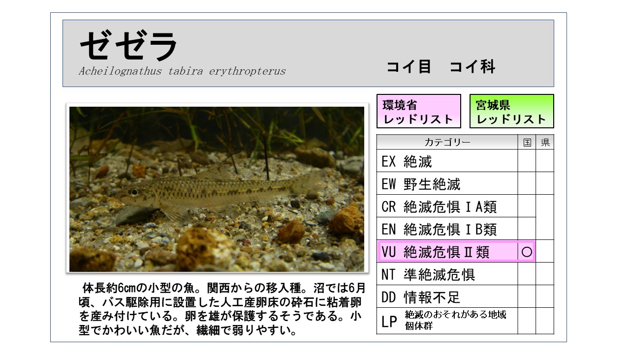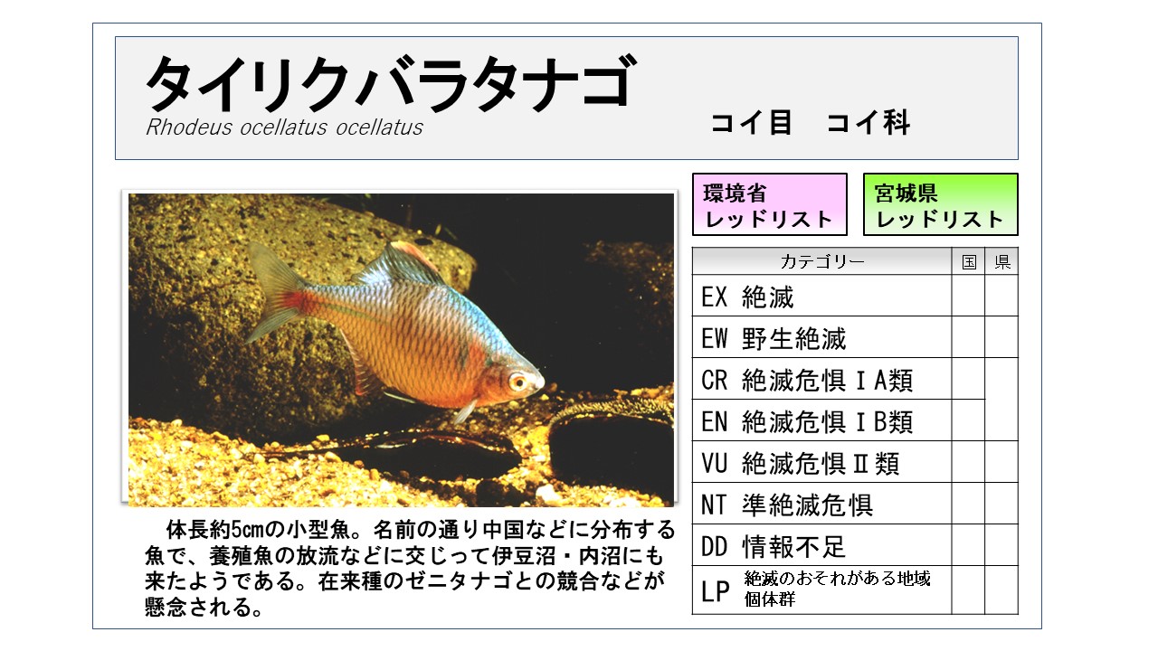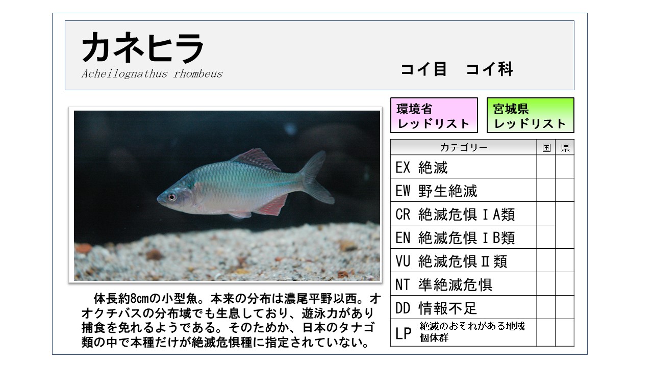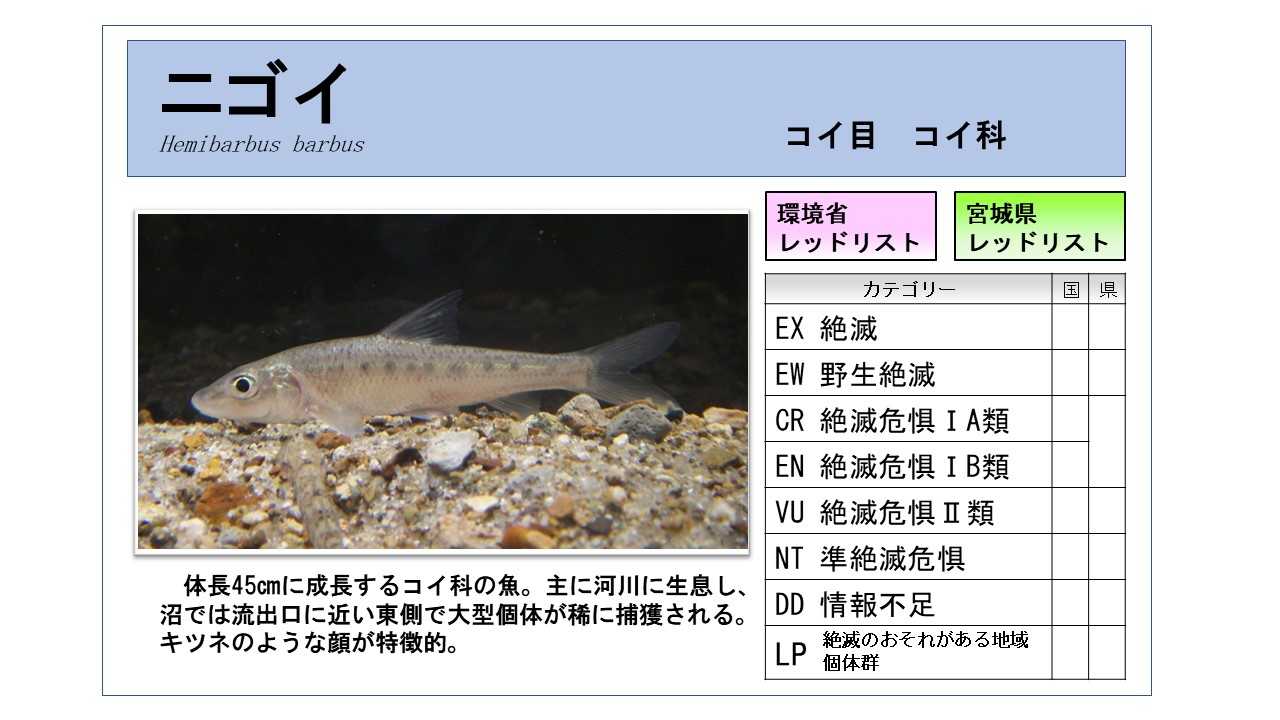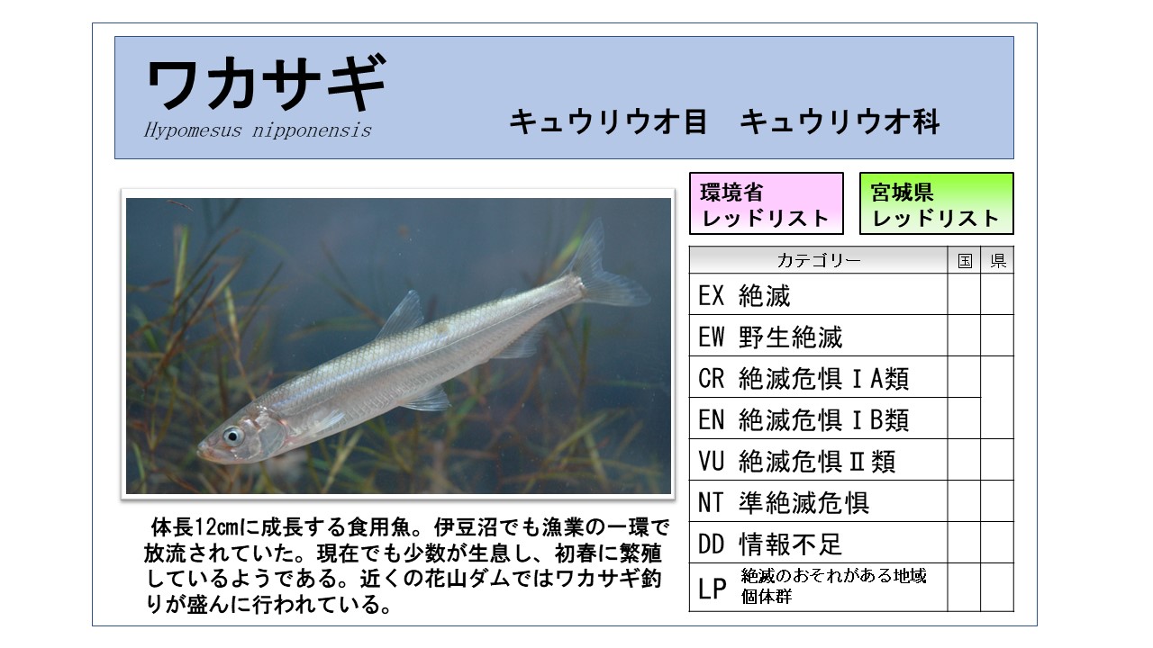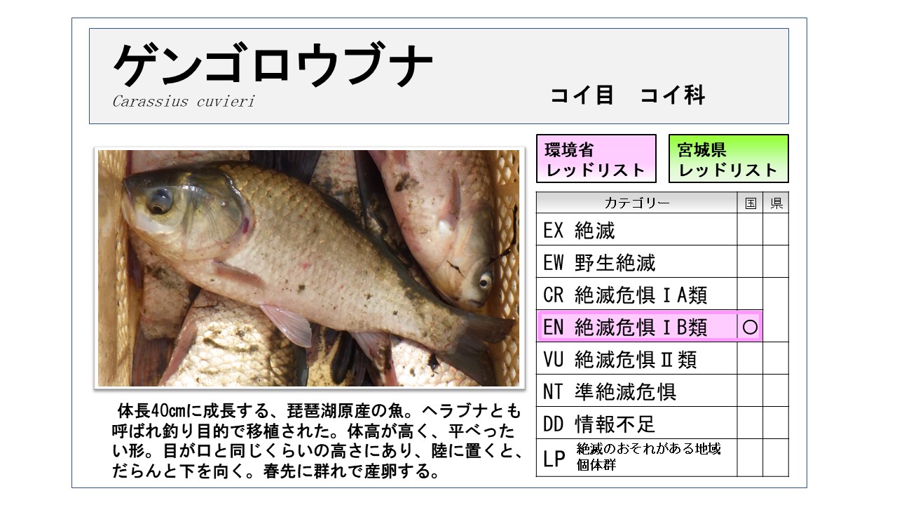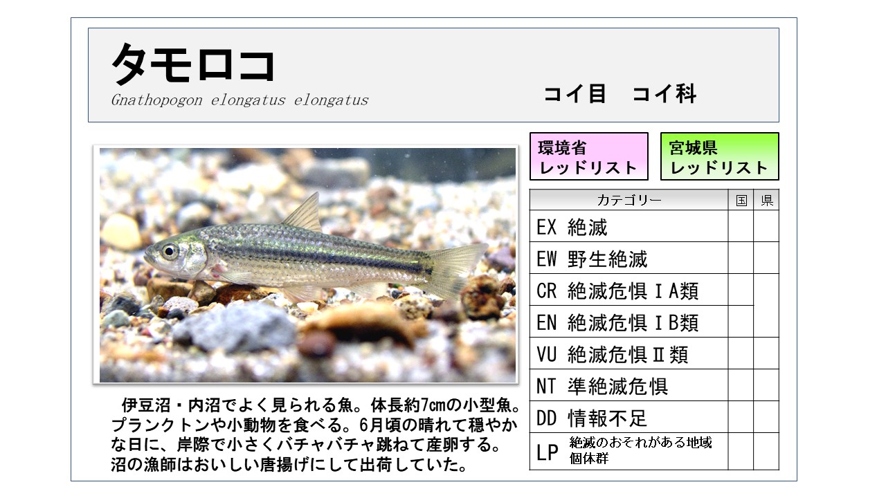 伊豆沼・内沼に生息する魚類を掲載しています。