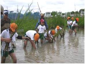 | 伊豆沼・内沼の美しい水辺の景観を守るために、毎年クリーンキャンペーン(一斉ゴミ拾い)を行っています。地域の小中学校や企業、団体、一般の方々など、多くの皆様の協力により美しい景観が保たれています。このクリーンキャンペーンは、従来、春・秋の年2回開催しておりましたが、これまでの活動により沼周辺のゴミの量は年々減少してきているため、平成27年度から春1回開催となります。 | ![]() |